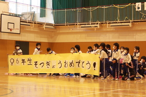 |   | |  | | 平成29年度 トピックス 3月4日の金曜日に、6年生を送る会が開かれました。日頃からお世話になっている6年生に感謝の意味をこめて、5年生が企画・運営をしてくれました。各学年共に、この日に向けて、出し物と6年生へのプレゼントを考えて備えました。