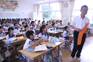 7月7日、午後からは、講師の先生をお迎えして、4年生で国語の授業の様子を見てもらいました。学校の職員もそれに参加して、一緒に国語の授業の研究会を持ちました。この会には、隣の染河内小学校の先生も参加していただきました。 授業の内容は、昔から教科書にも載っている「一つの花」という教材です。戦争と平和について扱ったもので、どのように子どもたちに考えさせたらよいのか学習を深めました。 子どもたちもしっかりと自分の考えをまとめたり、発表したりしていました。