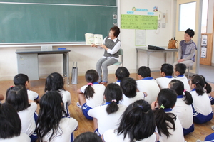 今日、2学期、2回目の図書ボランティアさんに来ていただき、本の読み聞かせをしていただきました。ありがとうございました。  | | | | |