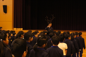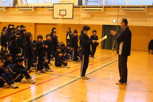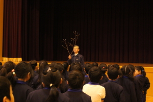 |   | |  | | 平成29年度 トピックス 今日の全校朝会では、校長先生が、千種で採ってこられた「みつまた」の木を子どもたちに紹介しました。「みつまた」は、名前の通り枝先が3つに分かれることからそう名付けられています。ご存じのように、和紙の原料にもなる木で、千種では和紙の生産が昔から盛んだったようです。いち早く春の訪れを待ちかねたように咲く花の一つで、淡い黄色の花を咲かせます。春は一日一日と近づいてきているようです。  先日行われた「書き初め展」の表彰も行いました。今日家に持って帰りますので、ご覧ください。