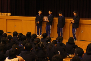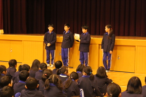 そして、ブック(図書)委員会の発表もありました。ブック委員の皆さんが、自分が読んでおもしろかった本の紹介を低・中・高学年別に紹介してくれました。みんなもきっと読んでみたいなあと思ったと思いますよ。ありがとう。