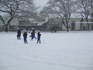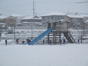 今日は、朝から雪がたくさん降って、たくさん積もりました。子どもたちは、学校へ来る時から楽しそうに来ていましたが、少し滑ったという子もいました。大きなケガの子どもはなかったのでよかったのですが。明日の朝も気をつけるように話をしました。運動場では一日中、子どもたちの歓声が響いていました。
