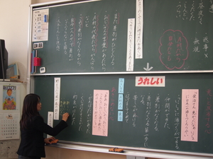 さて、5時間目には、6年生で、道徳の授業研究会がありました。一宮町内の小学校の先生や一宮南中学校の先生にも来ていただいて見ていただきました。子どもたちもはりきって学習に取り組み、自分の意見を言い、お互いの意見を交流し合いました。授業の終わった後には、先生が授業の様子について話し合い、これからのお互いの道徳の授業がよりよくなるように研究討議をしました。