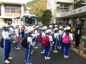 昨日、4年生が「ふるさとしそう探検隊」を行いました。これは、ふるさと宍粟の各地をいろいろ見学し、宍粟のよさに気づき、ふるさとを愛する心を育てるために行われている行事で、宍粟市内の全小学校で行っています。本校は、2回に分けて行います。1回目の今回は、千種町にある「たたらの里学習館」を訪れて、千種鉄について学習しました。地元の上山さんからお話を聞き、天児屋遺跡の見学もしました。お昼を食べて、午後からは,波賀町の引原ダムの見学に出かけました。2回目は12月に行う予定です。