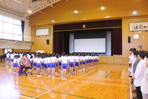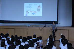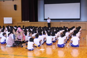 そして、式の後に、保健室の先生から「熱中症」に関する話もありました。これから運動会の練習も始まる中、熱中症が大変気になります。帽子や汗ふきタオルを持ってくることや(もちろん着替えもあれば言うことはありません)、たっぷりの水分を補給するために水筒の持参についても話をしました。学校でも指導をしますが、持ち物等についてお家でも十分注意をしてあげて下さい。どうぞよろしくお願いします。