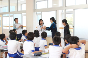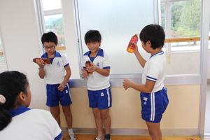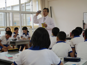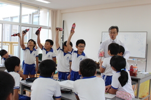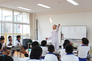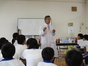 13日に神戸小学校で、神戸小学校と染河内小学校の5年生が一緒に、理科おもしろ実験授業を受けました。これは、宍粟市教育委員会が市内の小学校の5年生を対象に行っている授業です。神戸常磐大学の栗岡誠司先生が講師先生で、子どもたちに楽しい実験や理科のお話をしてくださいました。あっと驚くような演示実験や、へえ~と思うようなお話を交えながらの楽しい時間を過ごすことができました。神戸小と染小の5年生は、一緒になるのが自然学校以来でしたが、仲良く一緒に実験をすることもできて良かったです。栗岡先生、本当にありがとうございました。  | | | | |