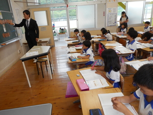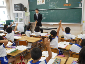 今日は、プール掃除をしました。朝から天候が悪くなりつつありましたので、午後からの予定を少し早めて行いました。高学年は、プールの中の掃除を、中学年や低学年は、プールサイドの掃除やプール周辺の草抜きを行いました。雨が降り始めましたが、高学年の子どもたちは、最後までしっかりとがんばってくれました。ご苦労さまでした。 来週にはプール開きを行いますが、子どもたちはとても楽しみにしています。しかし、プール授業は、安全にの細心の注意を払わなければなりません。プールの決まりを守って安全に授業をおこないたいと思います。ご家庭でも、毎日の健康調査、検温、プールカードへの押印等どうぞよろしくお願いします。 さて、3時間目には、教育実習に来ている実習生さんが、2年生で授業研究を行いました。算数で、「1000までの数」という単元の学習で、お金を使って10の単位のたし算やひき算を指導しました。子どもたちもしっかりと学習にがんばっていました。