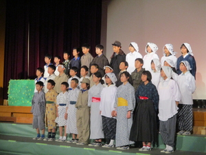 「3・1・5年は一生懸命に歌に演奏に精を出していました。先生と一体となったよい雰囲気でした。2・4・6年は、それぞれの学年の発達段階に応じた素晴らしい演技で楽しく見せていただきました。大きな声で堂々と振る舞い、また、観客の心に届く演技も大変感動しました。……。」(家族)