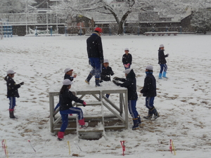 いよいよ今日から3月。春弥生と言いたいところですが、昨日からの雪で、朝からあたり一面が銀世界に変わってしまいました。しかし、子どもたちはうれしいようで、朝から雪遊びに一生懸命でした。