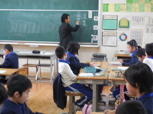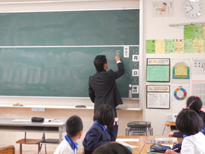 今日、一宮南中学校から国語の宮崎先生が神戸小学校の5年生へ授業をしに来てくださいました。これは、一宮南中学校区の小中一貫推進事業の一環として行われているもので、小中の先生が他の学校へ授業をしに行ったり、交流活動を行うものです。 今回は、5年生で国語の授業をしてくださいました。「シン友」のシンにあたる部分に入る漢字を、こんな友だちであってほしいという感じで考え合いながら、漢字のおもしろさや奥深さを体験できる授業でした。子どもたちも中学校では、小学校から発展した学習ができることもわかり、中学校への期待感や中学校の先生に対する親近感も生まれたことと思います。本当に宮崎先生ありがとうございました。