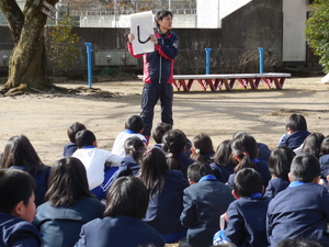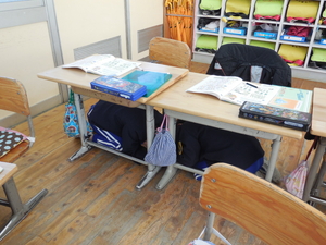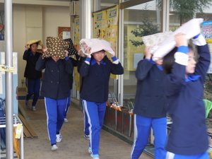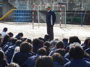 校長先生の講評では、避難訓練はとても上手にできたけれど、実際の地震では、第1次避難の後、その後も命を守るためにどう対応していけばよいのか、考えなければならないという話がありました。地震が起こった時に、家族がバラバラだったら、どこに集まる等の話をしていますかという校長先生の質問に、手を挙げている子どもたちもいました。ありがとうございます。本当に地震は、いつどこで起こるか分かりません。どのような時にも、臨機応変な対応が必要となります。学校でも子どもたちに話をしますが、自分の身は自分でしっかり守ることができるように、ご家庭でもお話をしてあげてください。どうぞよろしくお願いします。