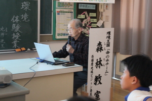 今日、5時間目に、兵庫県地球温暖化防止推進委員でひょうごグリーンサポーターの丸井先生に来ていただき、5年生が環境のことについて授業を受けました。主に森林のことについて1時間話をしていただきました。パワーポイントでたくさんの資料を見せていただきました。本当にありがとうございました。