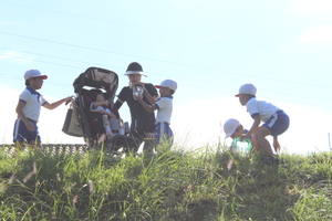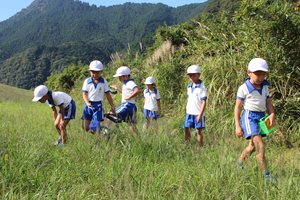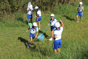 |   | |  | | 平成29年度 トピックス 今日は、朝から良い天候となり、子どもたちも運動場で思いっきり遊ぶことができていました。そんな中、1年生は学校の近くで虫取りに出かけました。昨日の雨のせいか、草むらの中では、たくさんの虫がいました。バッタとか蝶々、トンボなどがいたようです。バッタはたくさん素手で取れましたが、トンボや蝶々は、虫取り網を持って行っていたにもかかわらず、なかなか思うようには取れませんでした。そして、学校の周りでは、カマキリも見つけることができました。1時間の虫取りでしたが、子どもたちにとっては、もっと活動していたい生活科の1時間となりました。お家でも話を聞いてあげてほしいと思います。もしかすると虫を捕りに行こうと言う子もいるかも知れません。