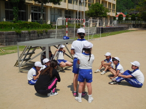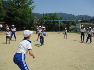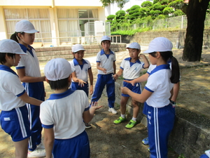 |   | |  | | 平成29年度 トピックス 今日は、今年初めての縦割り班遊びの日でした。全校児童が1年生から6年生までが混合で、16班に分かれて縦割り班を作っています。各班の6年生のリーダーが、しっかりと考えて色々な遊びを考えてくれました。鬼ごっこ、ドッジボール、フルーツバスケット、ハンカチ落としなど、運動場や体育館に別れて班ごとに遊びを楽しみました。どの班も高学年の子どもたちが低学年の子どもたちにもかかわりながら遊びます。昔ならどこの地域でも近所同士で近くの空き地や広場で行われていたことですが、最近ではあまり見られなくなってきています。しかし、そういった年齢の違う子どもたちが一緒に何かするということは、人間関係の形成の上でもとても大切なことであると考えます。そこで、本校では意図的にそういう時間を取り、高学年の子はリーダーシップを発揮し、低学年の子はそれに従いながらリーダーシップを学んでいくようにしています。縦割り班遊びの終わりには、遊ぶだけでなく終わりに必ず、班のメンバーのよかったことや感想も入れるようにしています。これから毎月、1度は入れるようにしていきます。