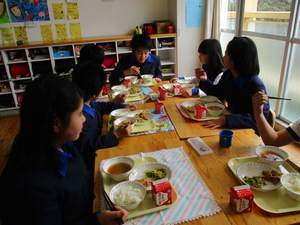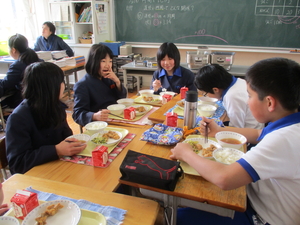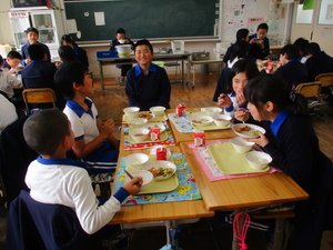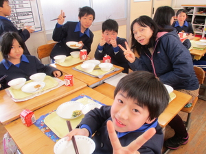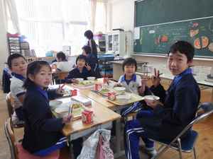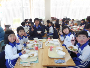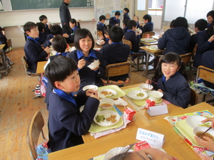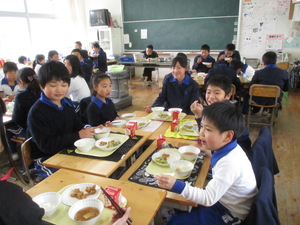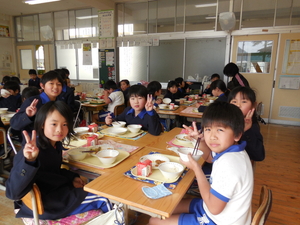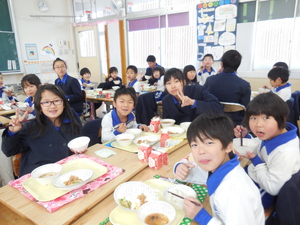 |   | |  | | 平成29年度 トピックス 今日から1週間、「なかよし給食」が始まります。「なかよし給食」とは、6年生の子どもたちが卒業を前にして、1年生から5年生のみんなと給食を一緒に食べようという企画です。6年生が中心に考えてくれました。6年生が班ごとに、各学年の給食の時間に入って行って、おしゃべりをしながら楽しみました。1週間ですべての6年生が、どの学年にも入る予定です。 明日は、授業研究会がありますので、下校時刻が変更となります。どうぞよろしくお願いします。