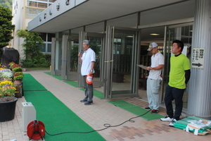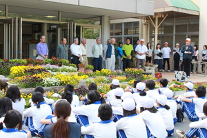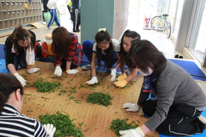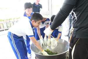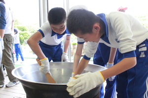 |   | |  | | 平成29年度 トピックス 今日は、6年生の子どもたちがPTAの方々や上神戸老人クラブの会長さん方にお世話になって、茶摘みと製茶作業を行いました。今日も少し暑いくらいでしたが、良いお天気の中、行事を行うことができました。 始めに、事業部長さんの司会で、学校長とPTA会長さんがあいさつをされました。そして、今年は、上神戸老人クラブの各単位クラブ会長さん方にお越しいただき、紹介をした後、あいさつをしていただきました。それから、6年生は2班に分かれて、茶摘みする者、製茶作業をする者で活動しました。