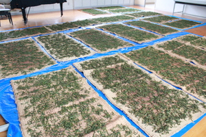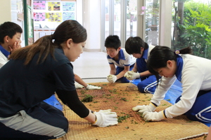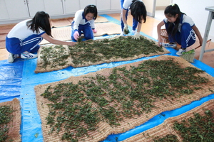 たくさんの方々のご協力と子どもたちの頑張りで、今年もたくさんのお茶をつくることができました。音楽準備室につくったお茶を干しています。子どもたちは新茶が飲めるようになるのを楽しみにしています。
