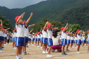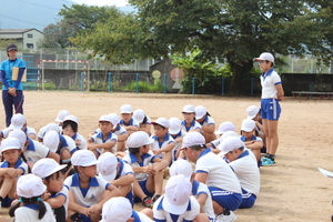 今日も朝から暑くなりましたが、曇り空で、運動場で運動会の練習ができました。練習の前に、6年生を中心に今日も練習のための準備(放送の準備やグラウンドの整備、ライン引きや石拾いや草抜きなど)を行ってくれました。昨日は昼から雨となったので、放課後準備ができなかった所が多かったからです。また、5年生のみんなも6年生と共に準備の手伝いを行ってくれました。すばらしいですね。準備もしっかりと整った中、1時間目は全体練習で、開会式や入場行進、ラジオ体操の練習を行いました。高学年のがんばりの中で、全校児童がしっかりと取り組めました。また、練習の終わりには、練習の振り返りとして、6年生が今日の練習のよかったことや課題をみんなの前で話をしてくれました。これからの練習に活かしてくれることと思います。