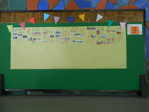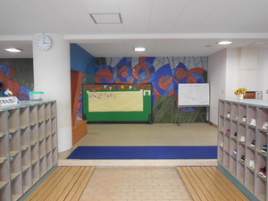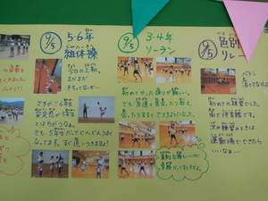 さて、今年も、児童用玄関のホールに運動会練習を掲示しています。運動会までのあゆみが写真とコメントで分かりやすくしてあります。子どもたちも学校へ来た時には、靴を履き替えて見ているようです。もし学校へ来られる機会がありましたら、どうぞご覧ください。