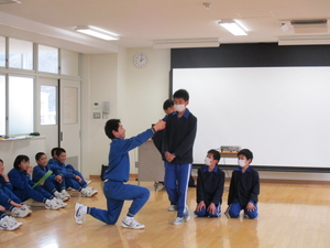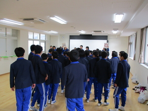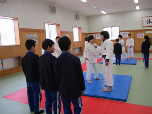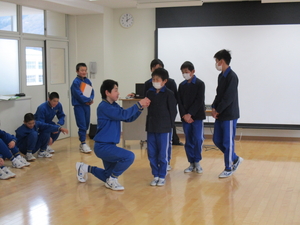 給食の後は、生徒会執行部による学校の説明や○×クイズを楽しみ、部活動見学に行きました。子どもたちにとって、最も楽しみなことでした。中学校に入って自分の入りたい部活だけでなくいろいろな部活動も見学できたり、ちょっとさせてもらったりして楽しい時間となりました。