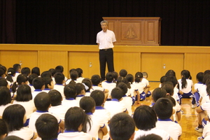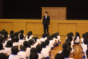 |   | |  | | 平成29年度 トピックス 今日は、全校朝会がありました。校長先生の話は、土曜日に、本校の体育館で行われた一宮南中学校区の敬老祝賀行事についての話でした。当日その行事が行われたことを知っていった子どもたちも多くいて、お家でもおじいさんおばあさんを大切にしましょうということも話しました。 そして、今日から教育実習が始まります。本校の卒業生になりますが、4年のクラスに入って、これから4週間の実習を行います。全校朝会でも、元気はつらつで、子どもたちの前であいさつをしてくれました。しっかりとがんばってください。