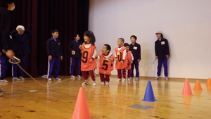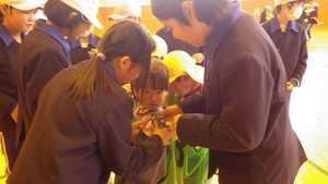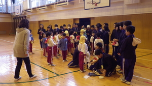 今日は、来年神戸小学校へ入学予定の神戸幼稚園の子どもたちが来ました。5年生のみんなが幼稚園へお迎えに行って、小学校へ招待しました。校舎の中を案内したり、体育館で一緒に遊んだりと楽しいひとときを過ごしました。後、4ヶ月すると、幼稚園の年長さんは小学校へ入学することになりますが、そのときは、今の5年生が6年生となって新1年生のお世話をすることになります。一緒に登下校もすることになります。少し前からお互いによく知り合い、仲良くできてよかったですね。