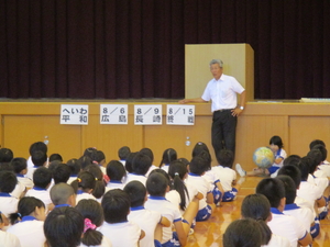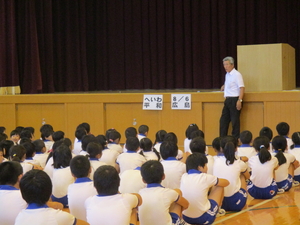 もちろん、夏休みの生活についても担当の先生から話しもあり、命を大切にする夏休みにしていこうとも話しました。 これから長い夏休みが始まります。明日から、水泳教室や個別面談が行われますので、子どもたちにとっては、まだ夏休みの気分ではないかも知れませんが、これからはご家庭や地域で生活するようになると思います。生活のリズムが崩れませんように、どうぞよろしくお願いします。 | | | | |