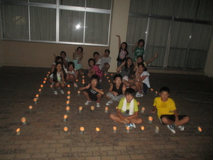 そして、お家の方からのうれしいサプライズ。6年生のみんなに向けての「仲間」の火文字は、美しく、また心に残るプレゼントとなりました。そして、お楽しみの肝試し大会。PTAの方のビックリドッキリもあって、怖くて怖くて、とても盛り上がりました。(しかし、その間の写真はありません) あと花火大会も楽しみました。