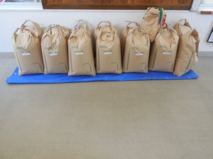 それと、10月6日に稲刈りをしたもち米が、玄米となって出来てきました。30kgのふくろに約14袋ありました。おおよそで400kgの収穫になります。