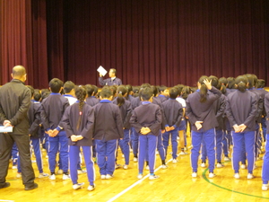 今日の全校朝会で、校長先生が、阪神淡路大震災についての話を子どもたちにしました。今から21年前の昨日、(1月17日)午前5時46分に神戸・淡路を中心として震度7の地震が襲いました。死者6,343名、行方不明者3名、多数の負傷者が出るという甚大な被害をもたらしました。私たちからすると宍粟市でも大きな揺れを経験したり、被害の様子を実際に見たりしていますが、時間の経過とともに、学校の職員の中にも生まれて間もない者もいるようになってきました。子どもたちにとっては、テレビでは見ることもあるでしょうが、歴史上の話になっているのかも知れません。しかし、これから先、いつ起こるかも知れない災害に備えるためにも、語り継いでいかなければならない出来事の一つです。 まず始めに、校長先生が、震災についての話をしてから、亡くなられた方々への鎮魂の意味を込めて黙祷を行いました。そして、いつ起こるか分からない災害について「自分の命を守るために」しなくてはいけないこと(自助)、近くの人がお互いに助け合うこと(共助)【校長先生は子どもたちに分かりやすく近助(きんじょ)という言葉を使いました】の話をしました。詳しい話は、各クラスごとに、道徳や学級会活動でも行っています。お家でも、この機会に、災害があった時の家族での決まり事を話し合われるのもいかがでしょうか。